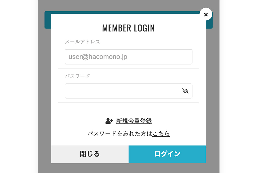 登録したメールアドレスと、アケルンサイトで登録したパスワードでログインしてください。